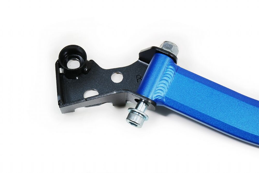 The Hardrace front strut brace features aluminum alloy center bar for extreme lightweight and superior strength. By tying the strut towers together, the brace capably eliminate lateral body deflections and maintain proper suspension geom