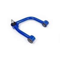 The front upper arms utilize built-in caster increase and ball joint angle change design to correct susepension geometry for lifted cars, allowing greater articulation and significantly improve off-road performance. They also feature high strength