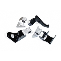 The engine mount kit is required when performing a K-series engine swap into Civic EK. It features 5mm thick steel alloy construction for the brackets, offering superior strength and durability to withstand higher horsepower and torque output. With the reinforced soild ruubber bushings, this kit also capably eliminate unwanted vibrations and flex of the mountings under hard acceleration, braking and cornering, ensuring the maximum transfer of power to the wheels.