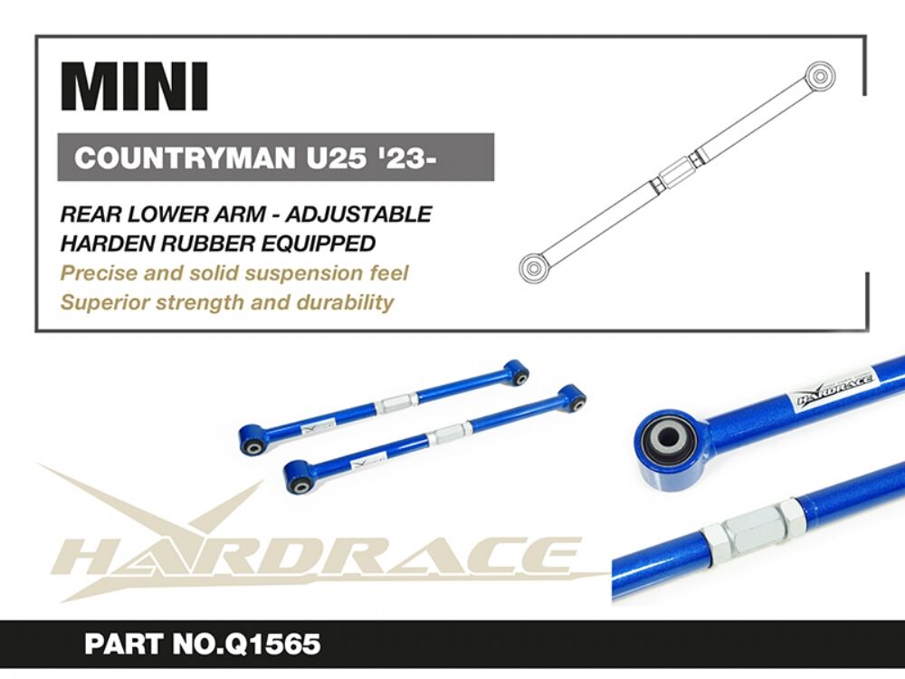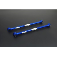 The adjustable arms allows fine adjustments to the rear end camber/toe setting of the vehicle. The arms are made of high tensile steel alloys to offer greatest strength and durability. With premium quality harden rubber bushings equipped, they also pro