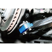 Hardrace geometry correction spacers will fix control arm geometry of lowered cars, putting the control arms back to stock position to restore handling performance, meanwhile keeping the bushings from constant twists and maintaining proper ball joint operating angle for better lifespan. The spacers are made from high strength CNC machined aluminum alloy with anodized surface to offer highest durability, sustain heavy loads and yet remain light-weight.