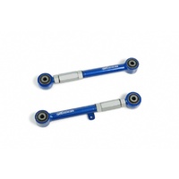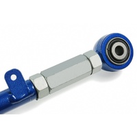 Toe arms allow fine adjustments to the rear end toe setting of the vehicle. It can help improve handling or get your car back to original specs after lowering. The toe arms are made with high-strength steel alloys to offer high durability, strength and yet remain light-weight.